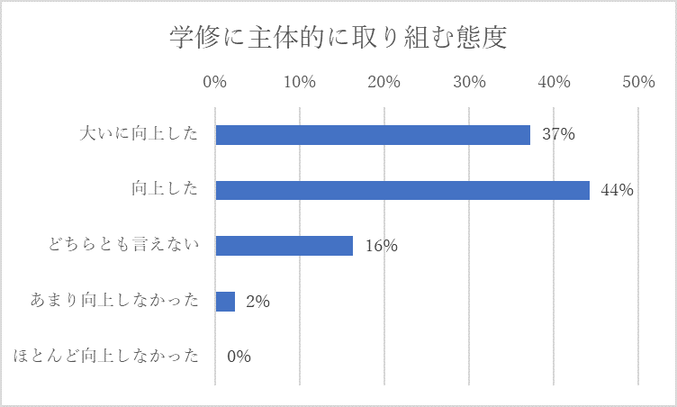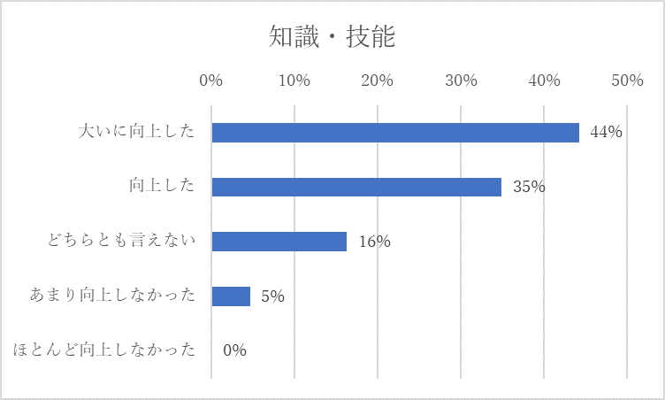 2023年度は関連科目の履修生が前年の1.68倍と大きく増加している。修了要件を満たした学生は前年度と同じく9名である。関連科目の履修生増加していることから、次年度には修了要件を満たす学生は増加すると考えられる。ただし、経営学部以外からの履修者が少ない状況は変わっていない。2024年度からは全学教養科目としてデータサイエンスの科目を新設するため、履修者の増加が考えられるが、履修ガイダンス等における周知が必要である。学修に取り組む態度に関する質問の回答結果では、「大いに向上した」「向上した」が80%を超えており、積極的に学ぶことの意識づけができている。知識・技能が「大いに向上した」「向上した」が約80%となっている。ただし90%を超えている科目がある一方で、約60%となっている科目がある。思考力・表現力・判断力が「大いに向上した」「向上した」は67%である。学修内容を整理し、学生の理解を向上させる取り組みが必要である。