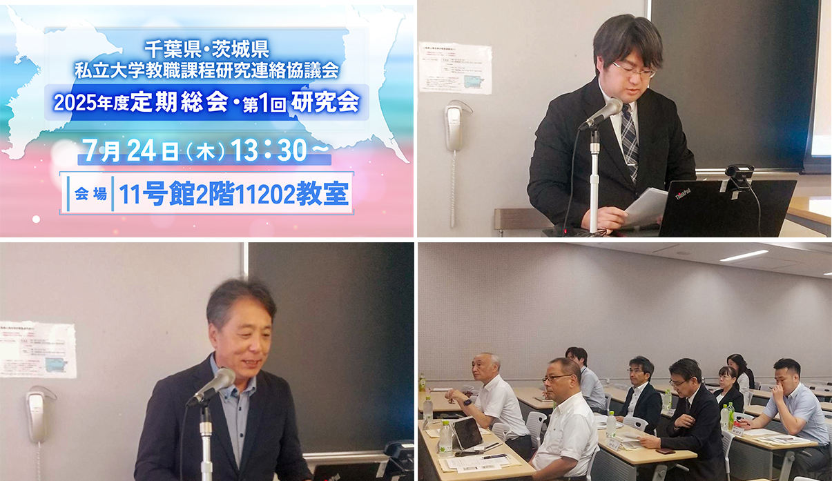 2025年7月24日(木)、児童教育学科・斎藤遼太郎先生の司会により、本学11号館とzoomのハイフレックス方式にて千葉県・茨城県私立大学教職課程研究連絡協議会の定期総会および第1回研究会が開催されました。
