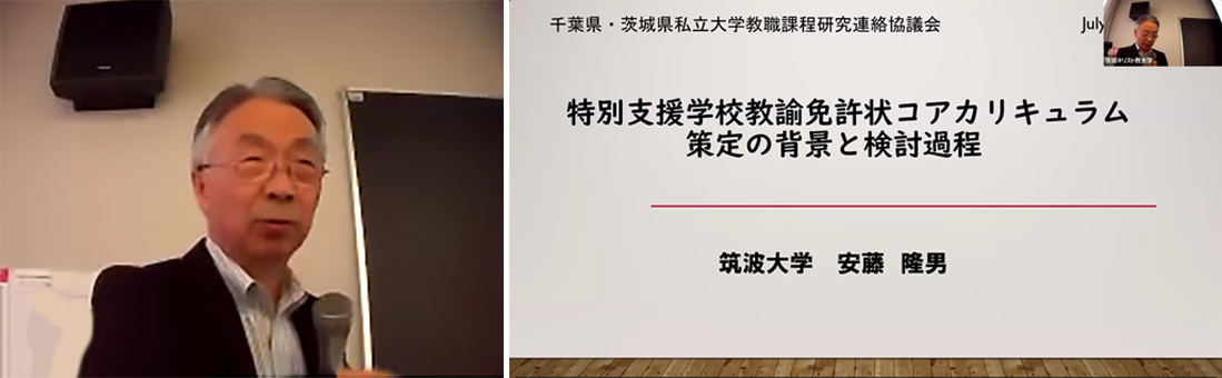 講師に、筑波大学名誉教授 安藤 隆男先生をお招きし、「特別支援学校教諭コアカリキュラム策定の背景と検討過程」をテーマにご講演をいただきました。