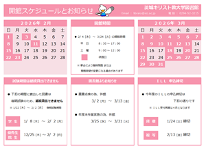 ※ 2026年 2月~ 3月の開館スケジュール ※