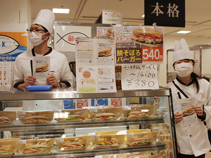 常陸乃食 魅力向上プロジェクト:学外で「鯖そぼろバーガー」を販売しました!vol.1
