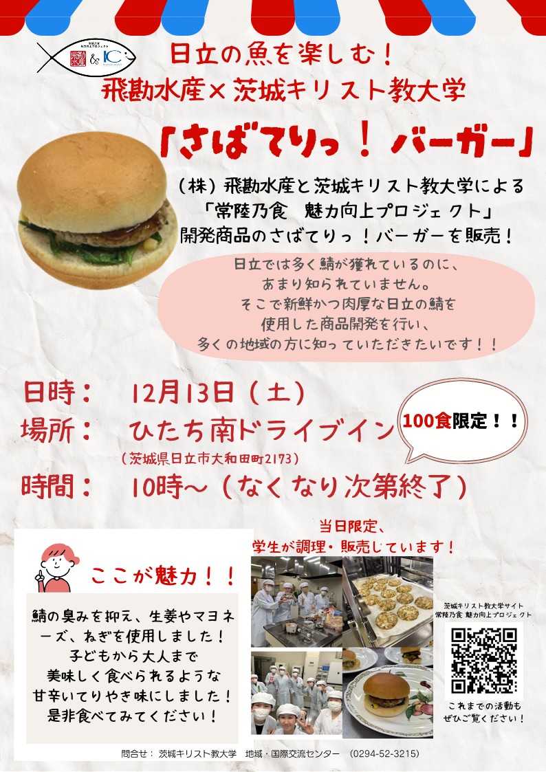 常陸乃食 魅力向上プロジェクト:「さばてりっ!バーガーお披露目販売会」を実施