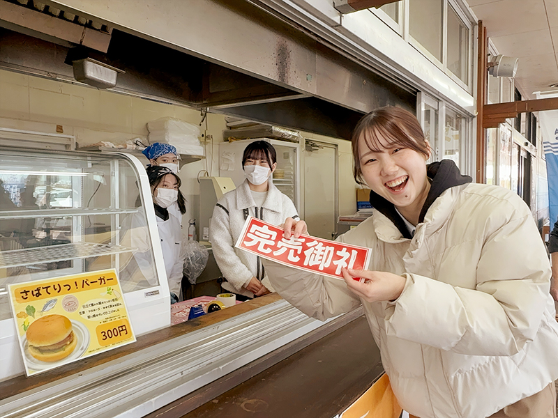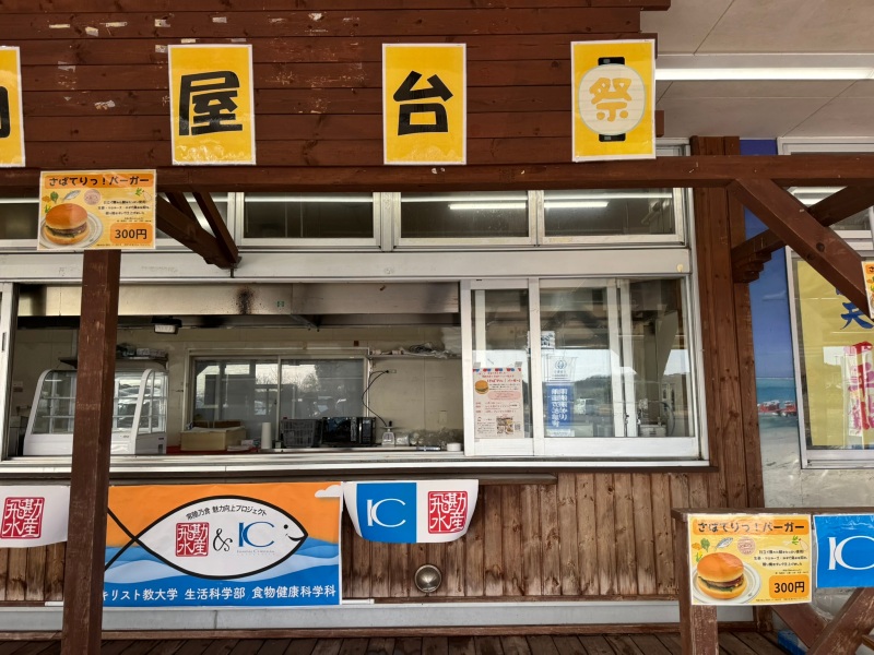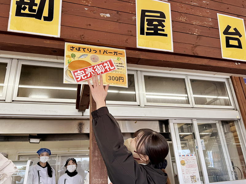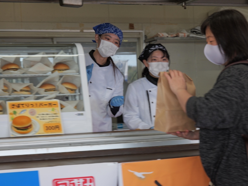 飛勘水産さまとのコラボ商品として試行錯誤を繰り返し、ようやく完成した「さばてりっ!バーガー」をお披露目販売することができました!