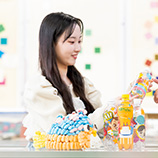 紙に線を描き色を塗ったり、粘土で立体造形したりする幼児の表現活動と、その発達を理解し、素朴な表現に共感しその力を伸ばすための知識や技能を身につけます。さらに幼児の創造性や感性を豊かに育てるため、正月や七夕など季節に応じた環境づくりや教材制作など、保育者に求められる表現力も養います。
