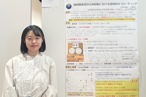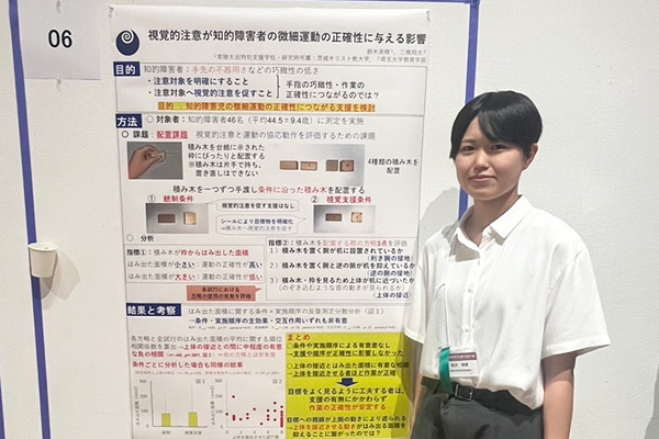 発表内容は、それぞれの卒業研究の一部をまとめたもので、知的障害のある方の「作業の正確性」や「ものの見方」を、心理学的手法によって明らかにしたものです。