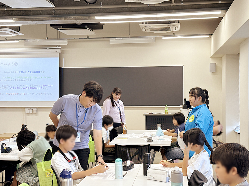 国語の授業ということで、少し緊張した面持ちの子ども大学生もいましたが、グループごとの連想ワードリレーなどのワークが始まると、高校生サポーターの誘導もあって、少しずつ初対面の子ども大学生同士でも交流ができ始めました。