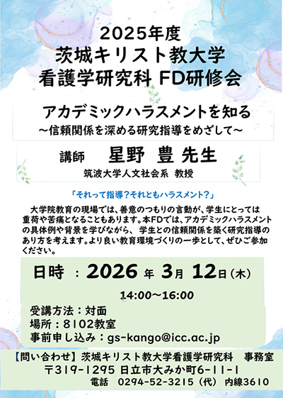 《テーマ》アカデミックハラスメントを知る~信頼関係を深める研究指導をめざして~