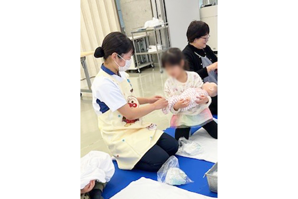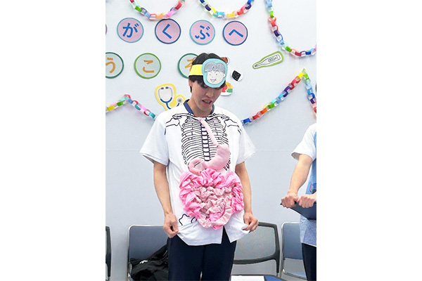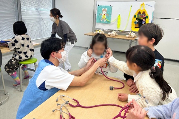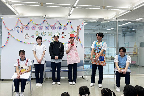 3月4日にみらい園、3月6日にせいじ園の園児さん85名を看護学部に招いて、【看護師のおしごと体験】プログラムを実施しました。 園児のみなさんには、『からだのお話』の健康教育や、『看護師の道具に触れる』と『赤ちゃんのおむつ交換』を体験してもらいました。 2年次・3年次の学生ボランティア8名が中心となり、準備や当日の進行を行いました。