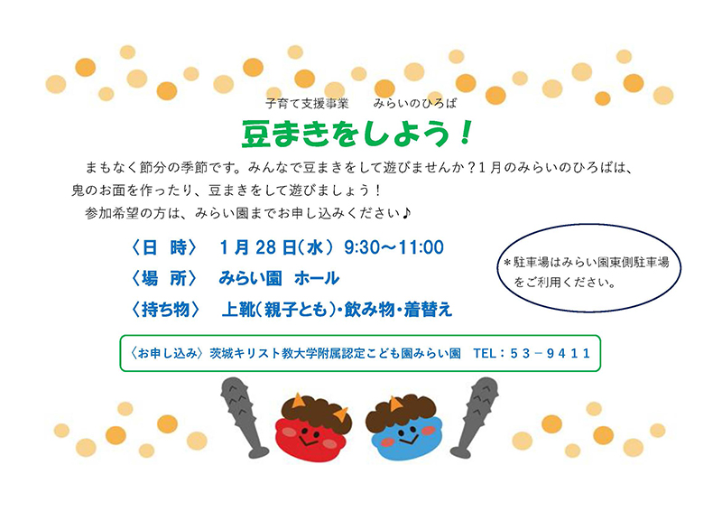 茨城キリスト教大学附属認定こども園 みらい園子育て支援事業「豆まきをしよう!」のご案内