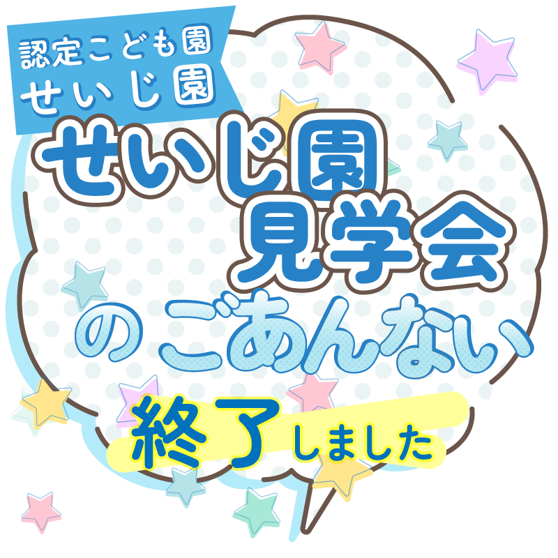 経験の積み重ね一つ一つが成長する大きな力となります。園児自身が直接、見る・触れる・感じる・楽しむことを大切に、そして遊びの中から多くのことを吸収していくことを願っています。そのために、面白さや楽しさ、不思議さを感じていけるよう、共に喜び、共に悲しみ、共に驚き、子どもたちの思いに寄り添いながら保育に臨み、豊かな幼児期になるよう努めてまいります。また、せいじ園の伝統を大切に、大学附属園として、そして地域の中に生きる園として様々な連携を深めていきながら、皆様に愛される園となるよう精一杯努力いたします。乳幼児期の今だからこそ、親子で楽しい園生活を送りましょう。