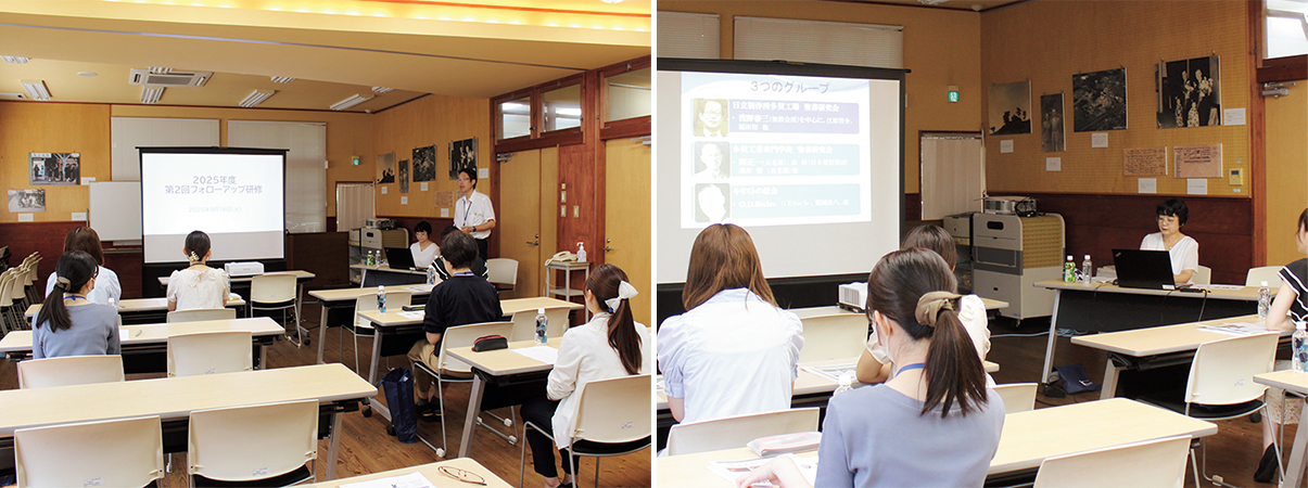 学園の歴史を振り返る講話として、学園資料センター職員の秋山純子氏から、資料センター所蔵の貴重な写真や8mm映像をふんだんに盛り込んだ"自校史教育"を受講しました。