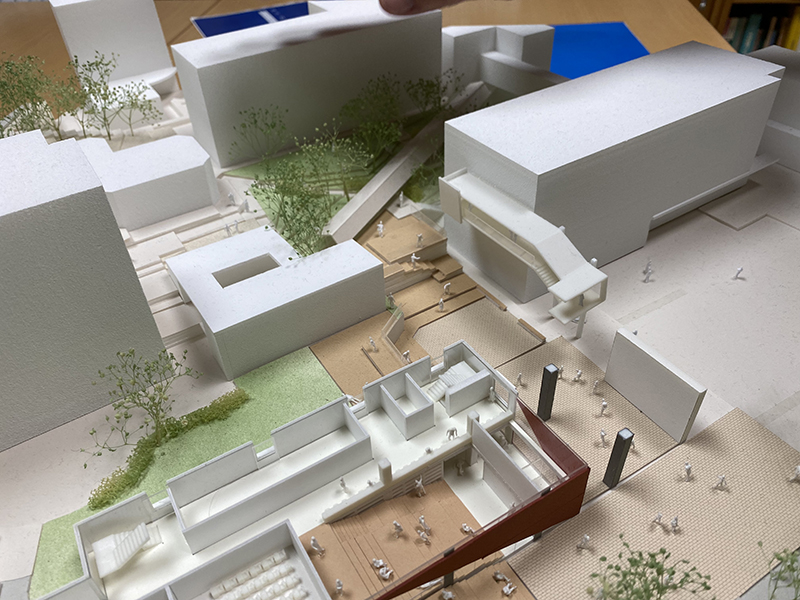この模型を見ると、現在建設中の建物とはずいぶんと違いがあり、それだけ会話を重ねてきたということを振り返れるんです。