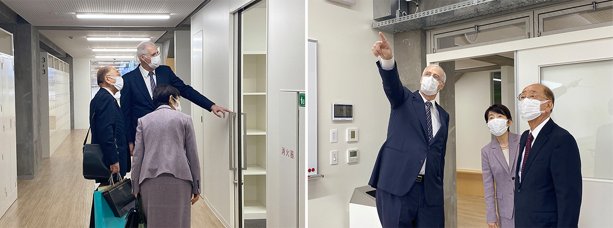 さて、感謝状を贈らせていただいた後は、竣工したばかりの校舎も見ていただきました。