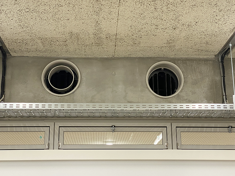 コロナ禍に計画された建築物ということもあり、換気設備も完備しています。竣工したばかりなのに塗料の臭いがそこまできつくないのも、この換気設備のおかげだと思います。