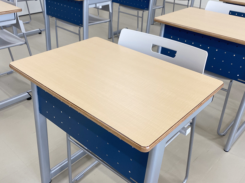 iPadでの授業を鑑みて、従来よりも天板が15㎝大きい机を採用しています。