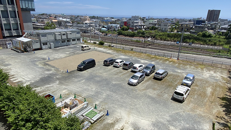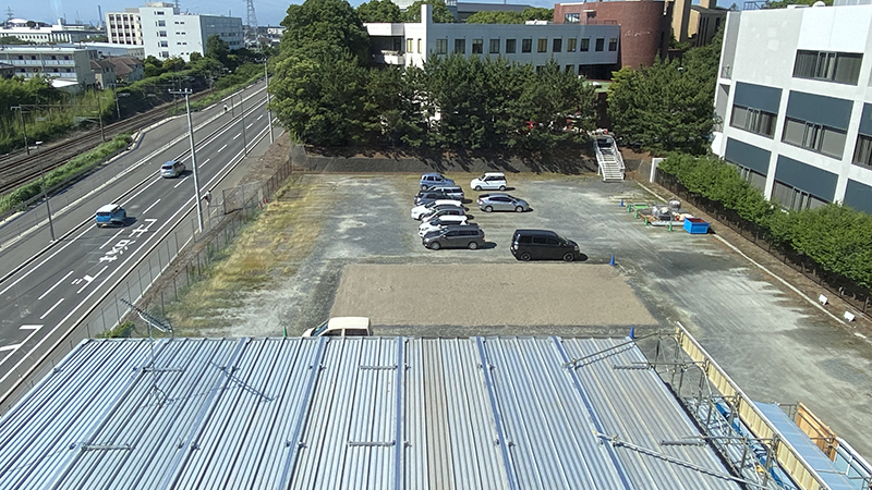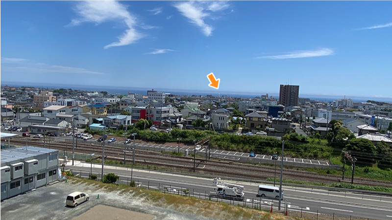 それにしても、屋上からの景色は最高です。(柵が無いので、海風で体勢を崩さないように注意!) 学園から約800メートルで海に到達します°˖✧◝(⁰▿⁰)◜✧˖°(印をつけたのは、日立灯台です) 棟上げしていくにつれて、この景色も見られなくなってしまうので、軌跡として納めていきたいと思います! にいつま