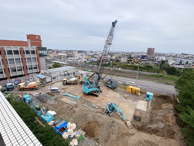 さて、そんな今日の大学新校舎はというと、地盤改良を終えて本格的な地中の障害物の撤去や岩盤の掘削を行っていました!