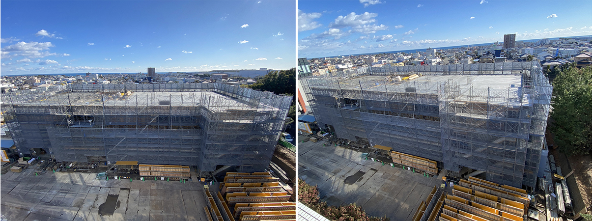 4階付近まで棟上げされており、そろそろこの場所から全景を撮影することは困難になりそうです。