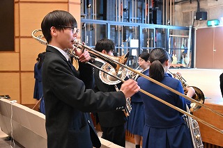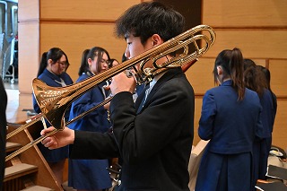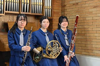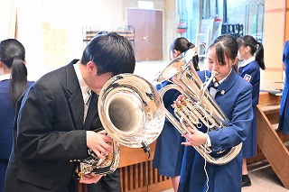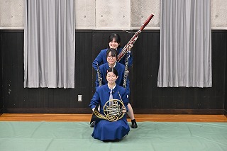 ※一緒に活動してくれる部員をいつでも募集中です。小学校・中学校で経験がある人も、もちろん初心者でも大歓迎!一緒に素敵な音楽を奏でてみませんか?活動日は水曜日と日曜日(第二土曜日で休校日のときも基本的に休み)を除く放課後です。興味のある方は中学・菊池賢または高校・小圷まで。