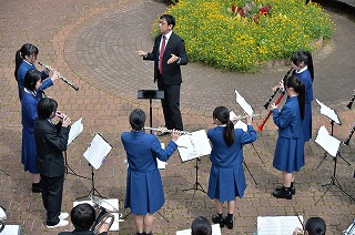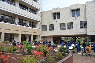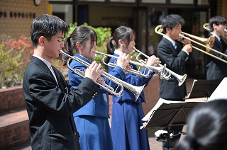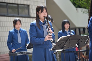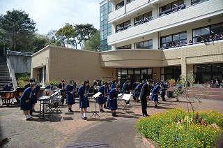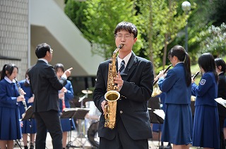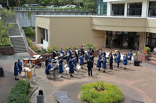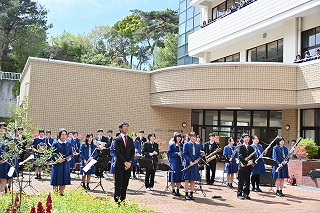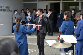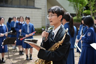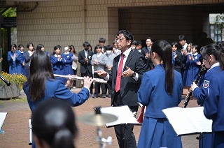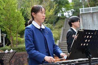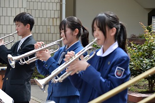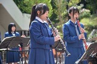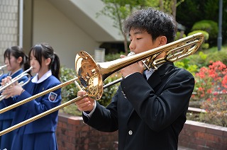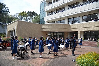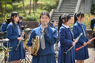※一緒に活動してくれる部員をいつでも募集中です。小学校・中学校で経験がある人も、もちろん初心者でも大歓迎!一緒に素敵な音楽を奏でてみませんか?活動日は水曜日と日曜日(第二土曜日で休校日のときも基本的に休み)を除く放課後です。興味のある方は中学職員室・菊池賢と高校1年職員室・上圷まで。