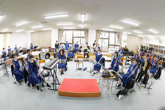 ※一緒に活動してくれる部員をいつでも募集中です。小学校・中学校で経験がある人も、もちろん初心者でも大歓迎!一緒に素敵な音楽を奏でてみませんか?活動日は水曜日と日曜日(第二土曜日で休校日のときも基本的に休み)を除く放課後です。興味のある方は中学職員室・菊池賢まで。