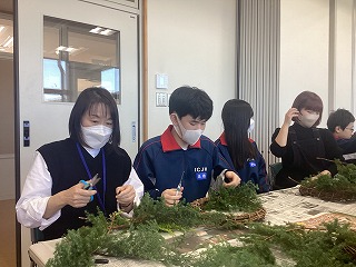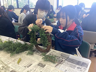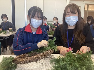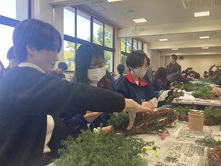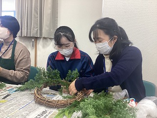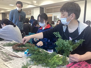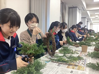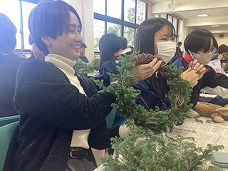 笑顔があふれ、心温まるクリスマスリースが完成しました!