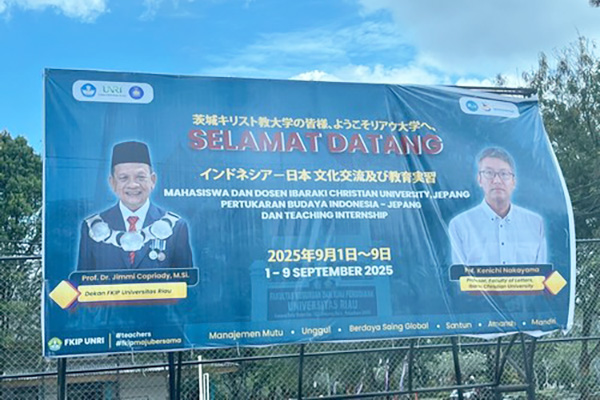 文学部 日本語教員資格「日本語教育実習A」(担当:文化交流学科 中山健一教授)の実習の1つとして、文学部文化交流学科・現代英語学科の学生がインドネシア リアウ大学で日本語教育実習をおこないました。