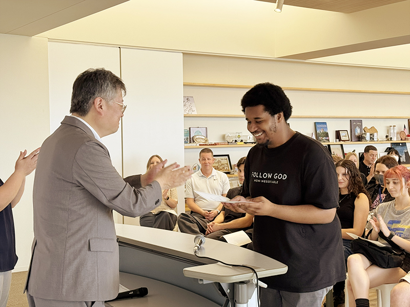 オクラホマ・クリスチャン大学(OC)とファンショーカレッジ(FC)の留学生のプログラム修了を記念して、離学する前日の夕方、修了証書授与式を開催しました。