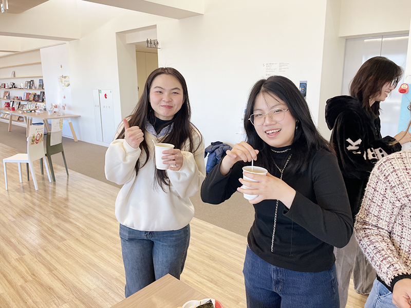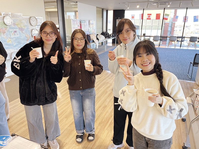 寒いこの時期のおしるこは留学生にもとても喜ばれました。