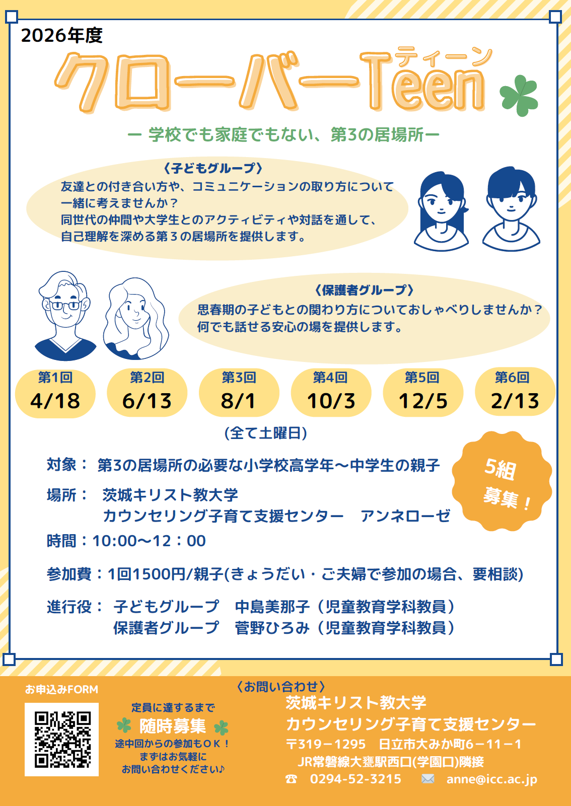 【2026年度】「クローバーTeen」講座を開催します(随時募集)