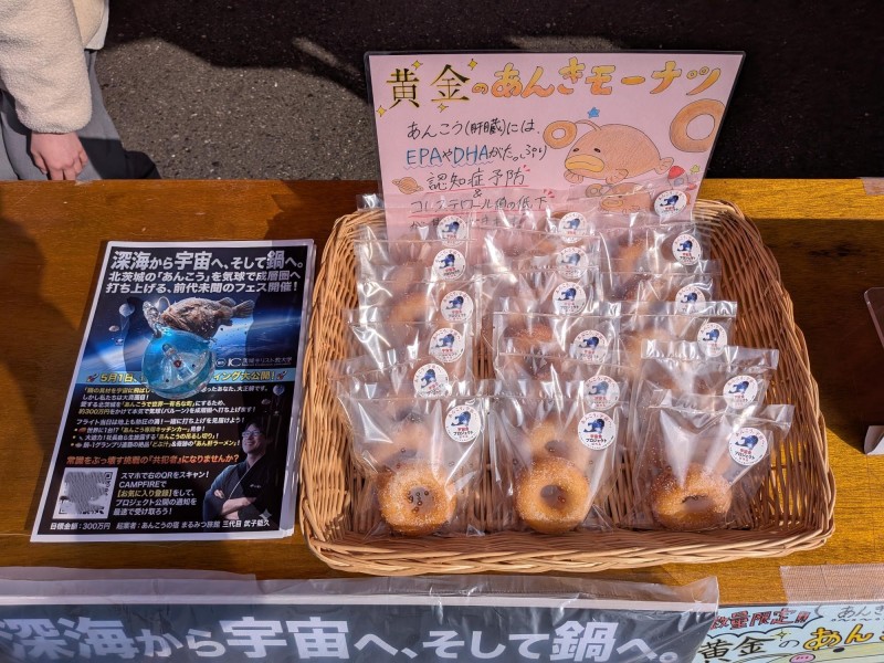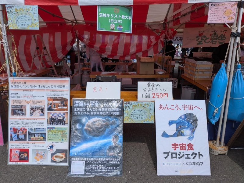 産学連携「あんこう、宇宙へ。宇宙食プロジェクト」とは? あんこうの町(株)(旧:(株)魚の宿まるみつ)・本学生活科学部食物健康科学科による共同研究の名称です。 本学食物健康科学科があんこうなどに関するレシピを提供し、まるみつ旅館様が当該レシピで調理、北茨城市主催イベントにて販売するというもの。 将来的にはあんこうを使用した宇宙食の開発を目指しています。
