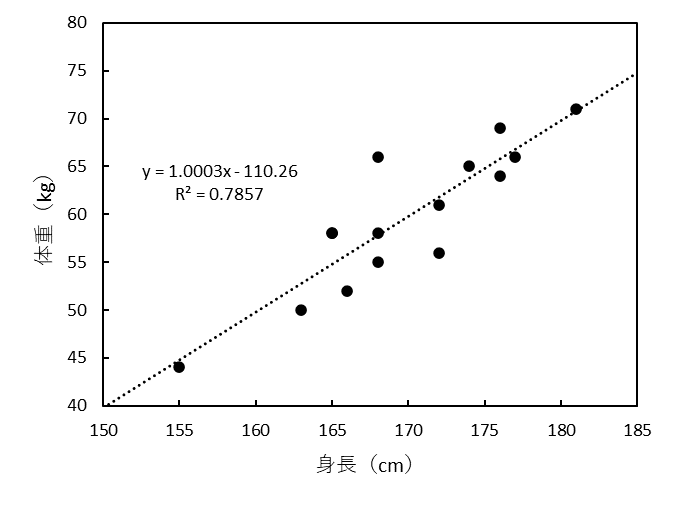 上式からも分かるように、決定係数 $R^2$ は先に見た相関係数 $r$ の 2 乗($R^2=r^2$)である。